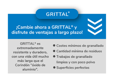 GRITTAL® es extremadamente resistente, duradero y eficiente, y dura mucho más que el óxido de aluminio. Los abrasivos de acero inoxidable GRITTAL® son: