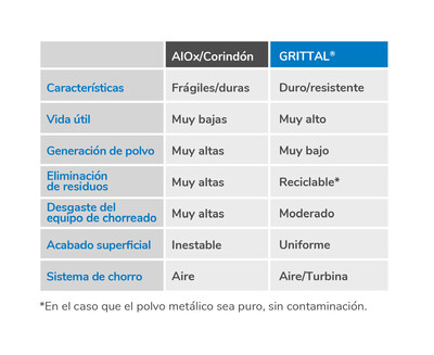 Ventajas y propiedades de GRITTAL frente a la corindón