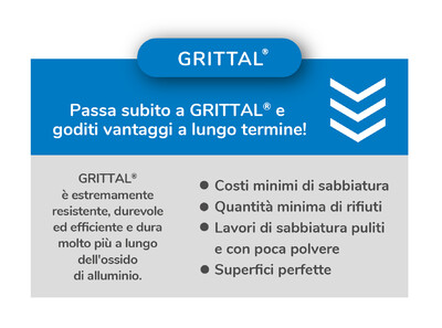GRITTAL®, grazie alla sua elevata riciclabilità e ai bassi costi di smaltimento, si distingue chiaramente ed è quindi una vera alternativa al corindone.